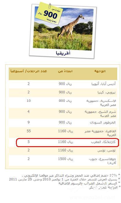 من مسقط الى كازا ع القطرية بسعر 191 ريال عماني وع الاتحاد 192 ر.ع