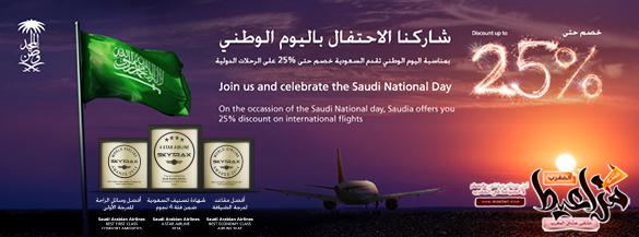 السلام عليكم مزاعيطنا الكرام :maroc (934): بدأ اليوم عرض اليوم الوطني على الخطوط السعودية بتخفيض يصل إلى 25% :maroc (982): لجميع الرحلات الدولية على أن يكون تاريخ الشراء من اليوم 18 إلى 30 سبتمبر الحالي والسفر بين تاريخ 15 أكتوبر إلى 16 ديسمبر 2014 ودمتم بخير https://www.mza3et.com/up/uploads/im...f3c28ba08c.jpg |