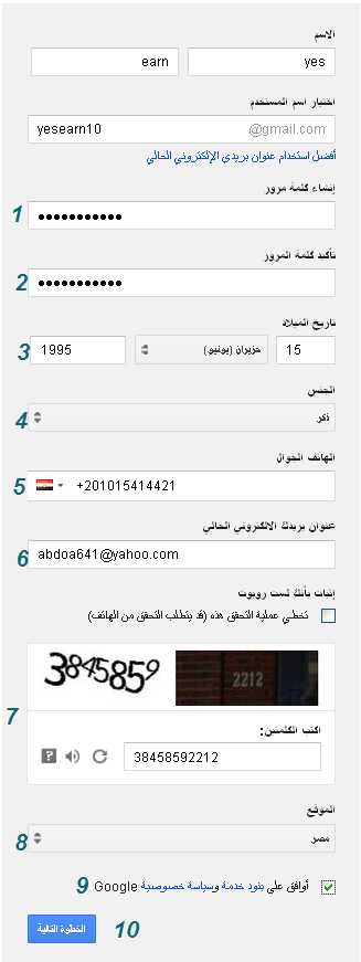 5-رقم الهاتف مهم ممكن يستخدم فى عمليه تأكيد الحساب