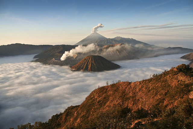 جبل برومو في منطقة جافا الشرقية أحد المعالم السياحية المتميزة في إندونيسيا بارتفاعه الشاهق الذي يصل إلى 2329 متر, و إطلالته الساحرة من خلف الغيوم التي تكتسي قمته.