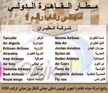 تجدون هنا معلومات عن صالات مطار القاهره والرحلات اللي تنزل فيها