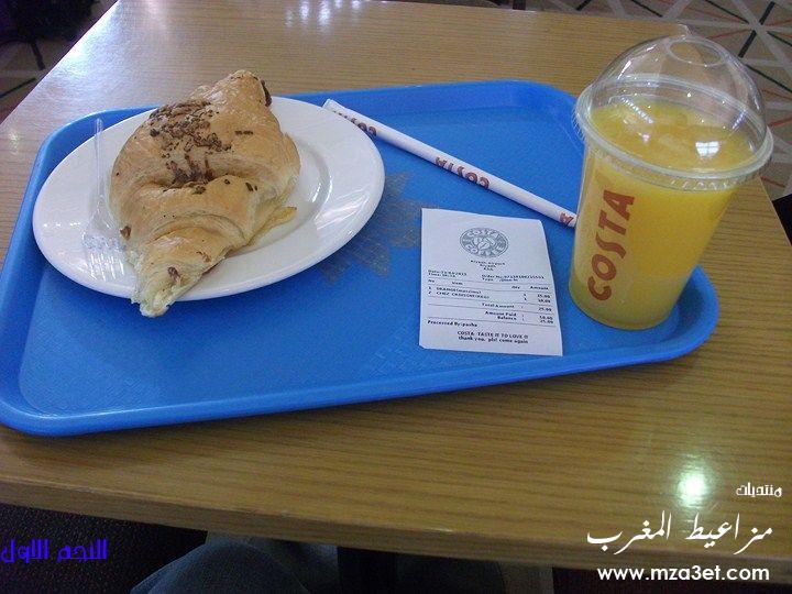 ورحت لكوستا كوفي ,,,واخذ من عندهم كروسان جبن وعصير برتقال